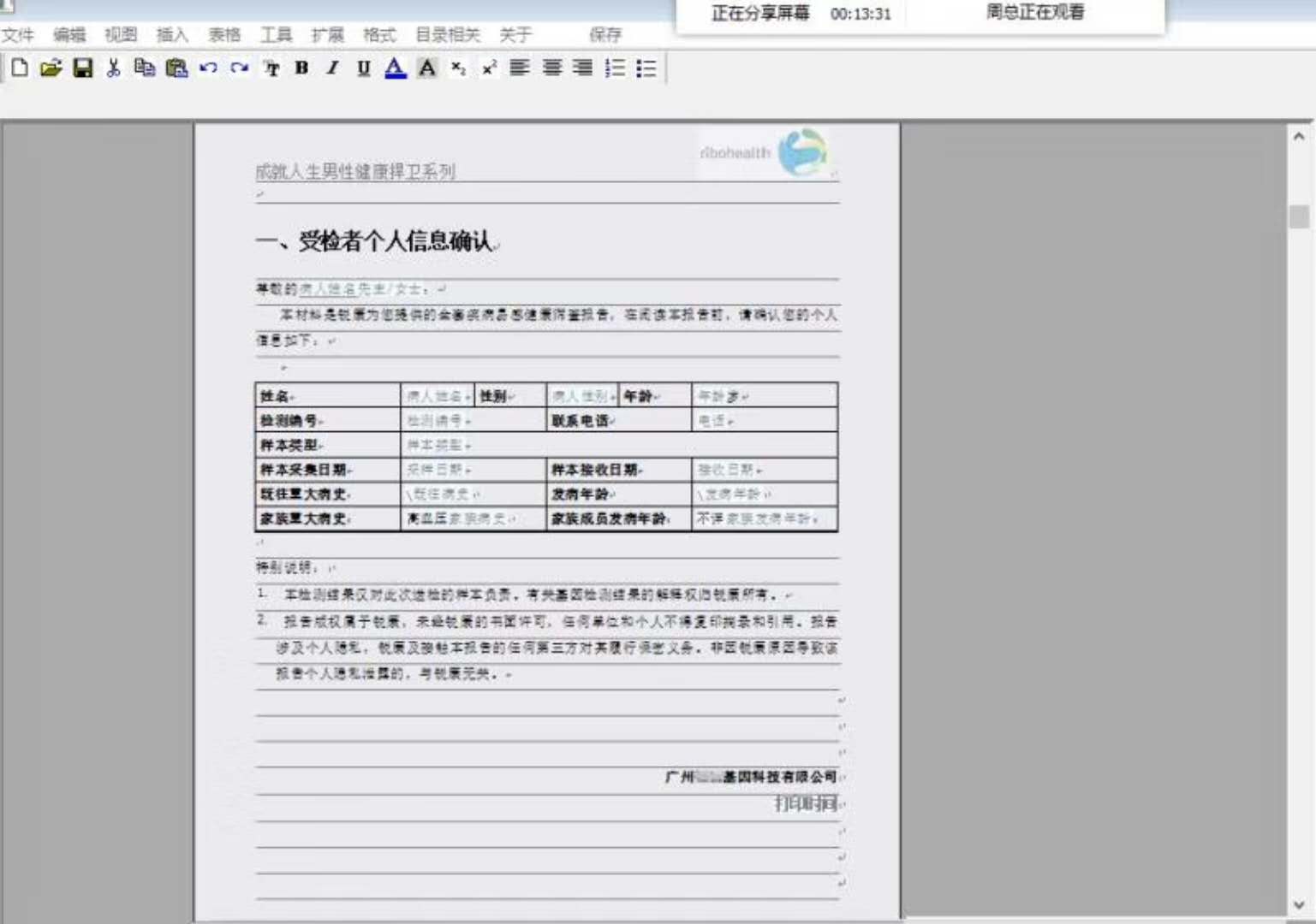 B、可基于任意页的复杂报告模板动态加载样本基本信息、检测结果信息(可以表格形式展现检测结果)、图片信息等自动生成基因检测报告书。